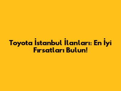 Toyota İstanbul İlanları: En İyi Fırsatları Bulun!