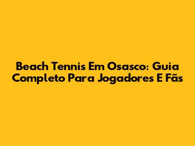 Beach Tennis Em Osasco: Guia Completo Para Jogadores E Fãs