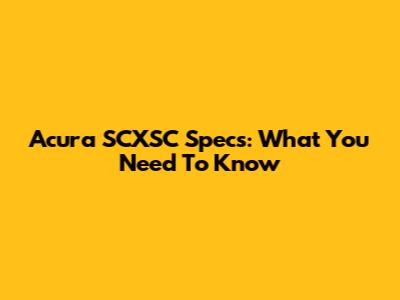 Acura SCXSC Specs: What You Need To Know